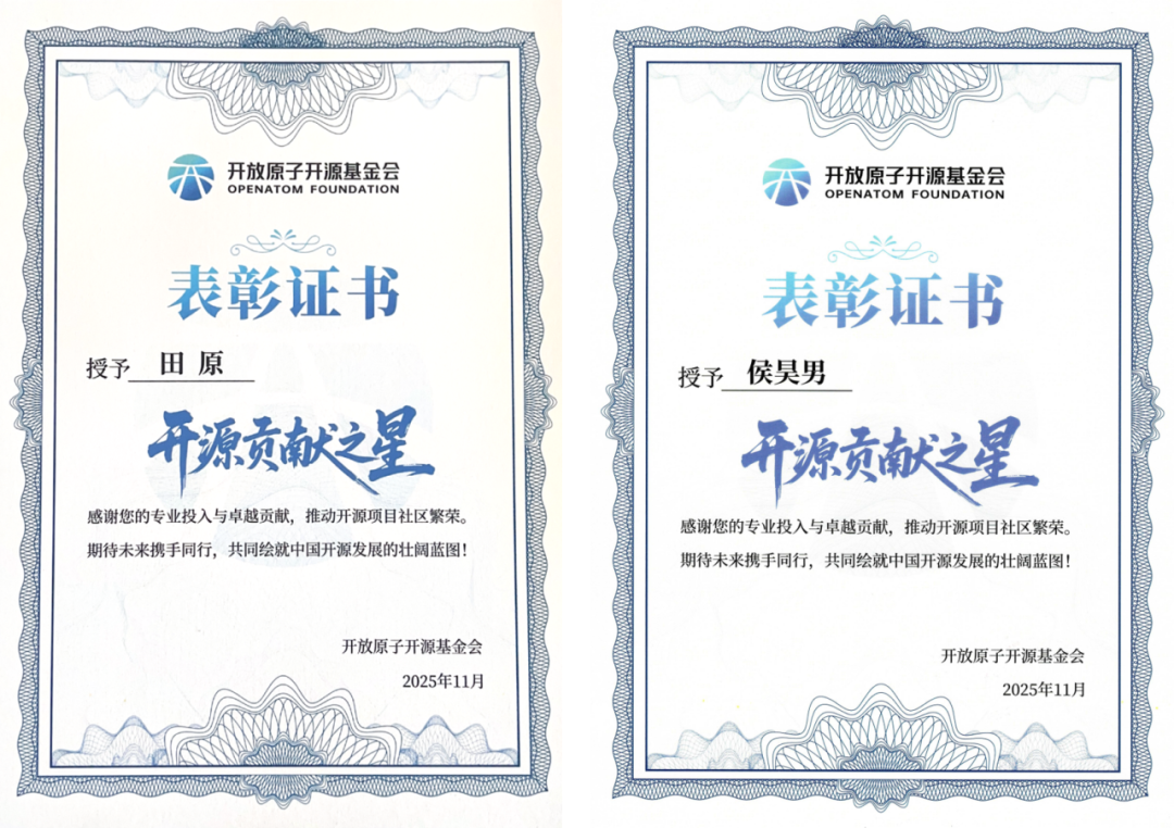 11 月 21 日,2025 开放原子开发者大会开幕式在北京成功举办,会上举行"中国开源创新力量致谢仪式",向操作系统、数据库、人工智能三大技术领域 28 个开源先锋项目中作出卓越贡献的 47 位开发者致谢。通过系统化数据采集、模型测算与专家评审,Apache IoTDB 荣获开源先锋项目,此外 Apache IoTDB 项目核心贡献者、PMC 成员田原和侯昊男荣获开源贡献之星。
