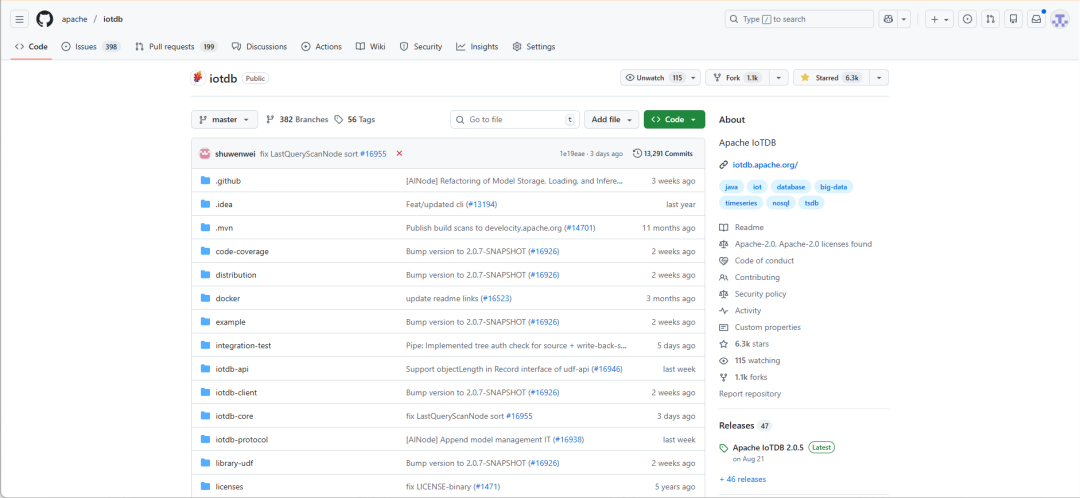 Apache IoTDB 是一款低成本、高可靠的工业时序数据库,为 Apache 基金会 Top-Level 项目,主要面向工业大数据智能化转型中的状态监控、故障预测、工艺优化与数字画像等场景,具有多协议兼容、超高压缩比、高通量读写、工业级稳定、运维简便等特点。据不完全统计,Apache IoTDB 已服务规上工业企业超过 1000 家,在国家电网、国家气象局、中航成飞、中核集团、中国中车、长安汽车、金风科技等国内企业,与博世力士乐、德国宝马、西门子、日本小松等海外企业广泛应用。