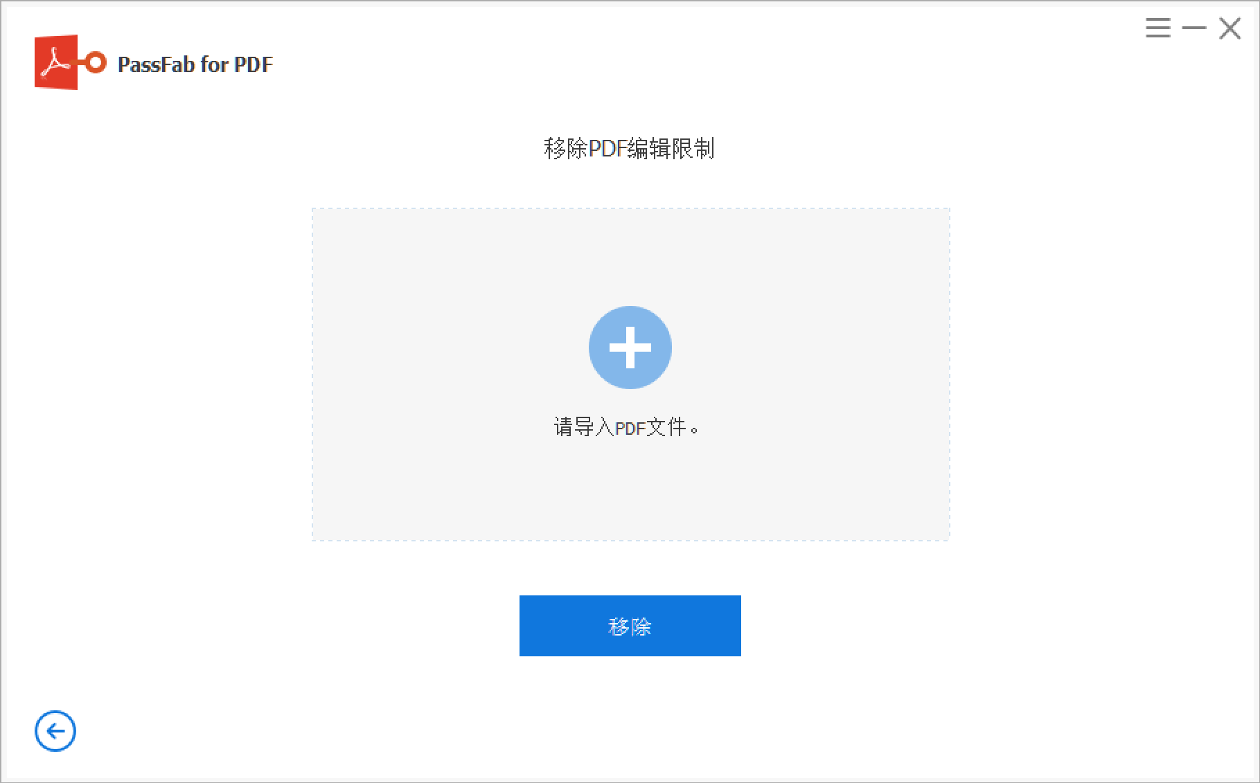 把需要解除限制的PDF文件,直接拖到软件界面上,或者点击「添加文件」导入;