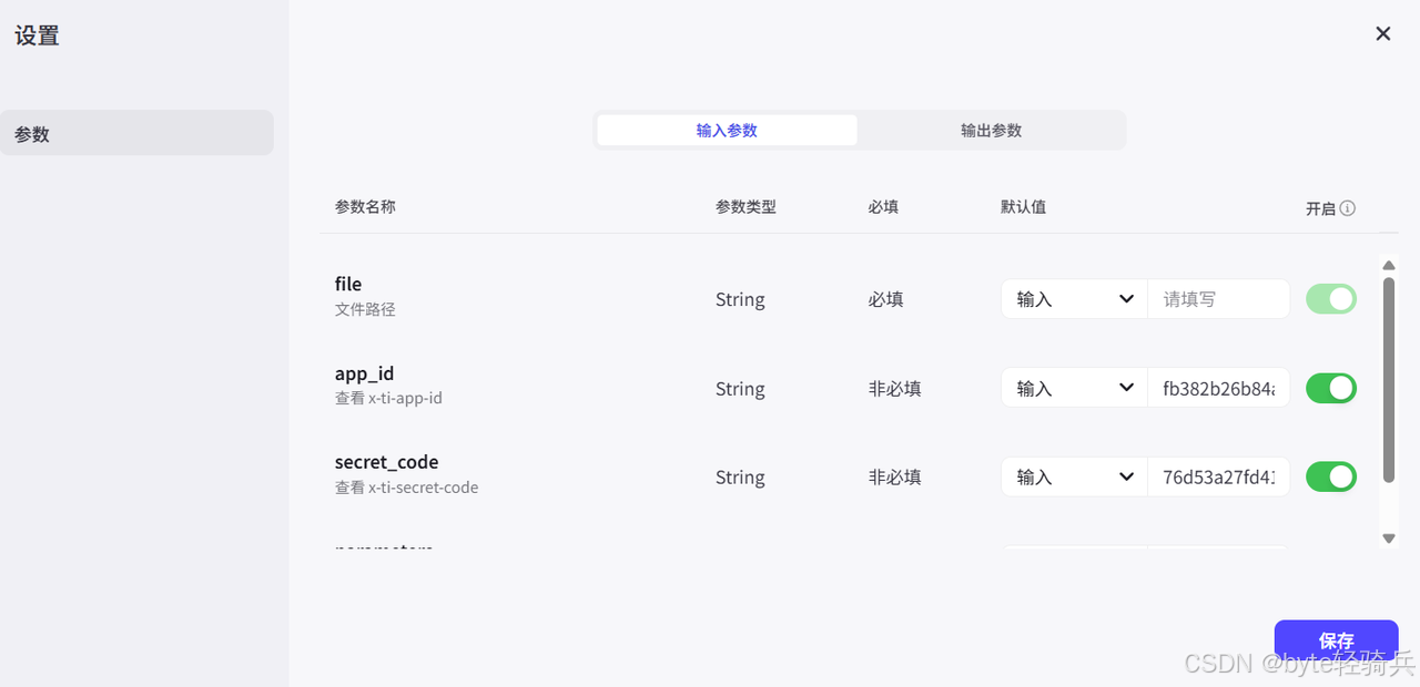 输入类型:选择"文件URL"或"base64" (建议:上传文件到Coze知识库获取URL) 语言检测:开启 输出格式:markdown 表格识别:开启 版面分析:开启代码配置示例(节点设置中的"高级配置"):