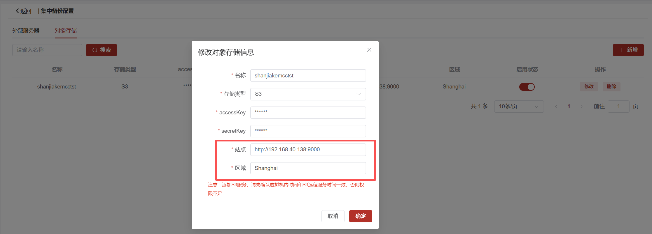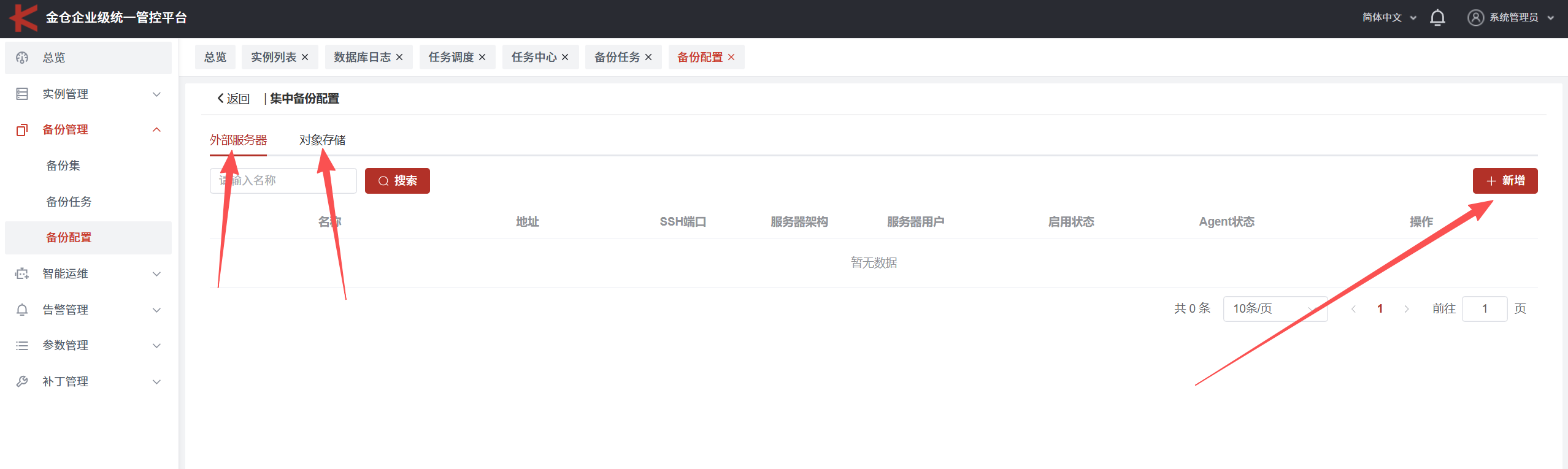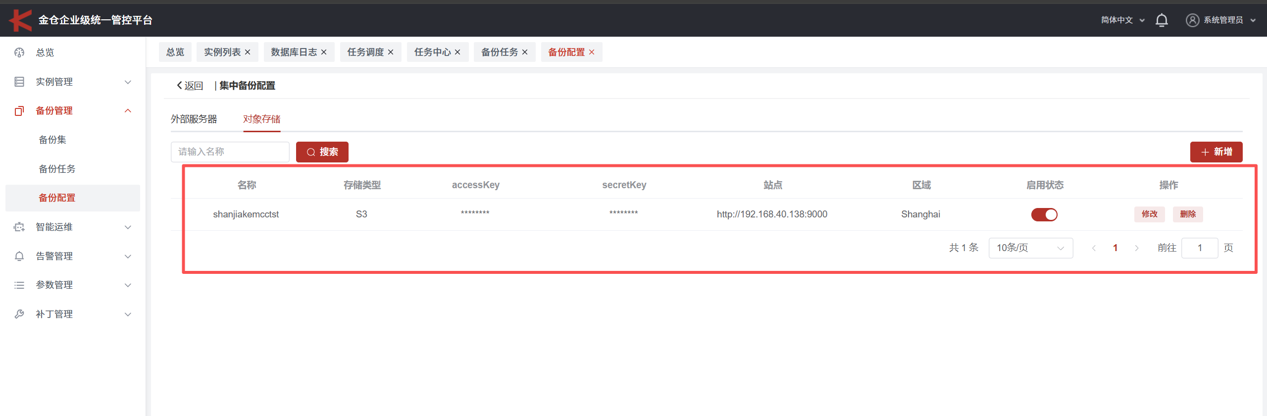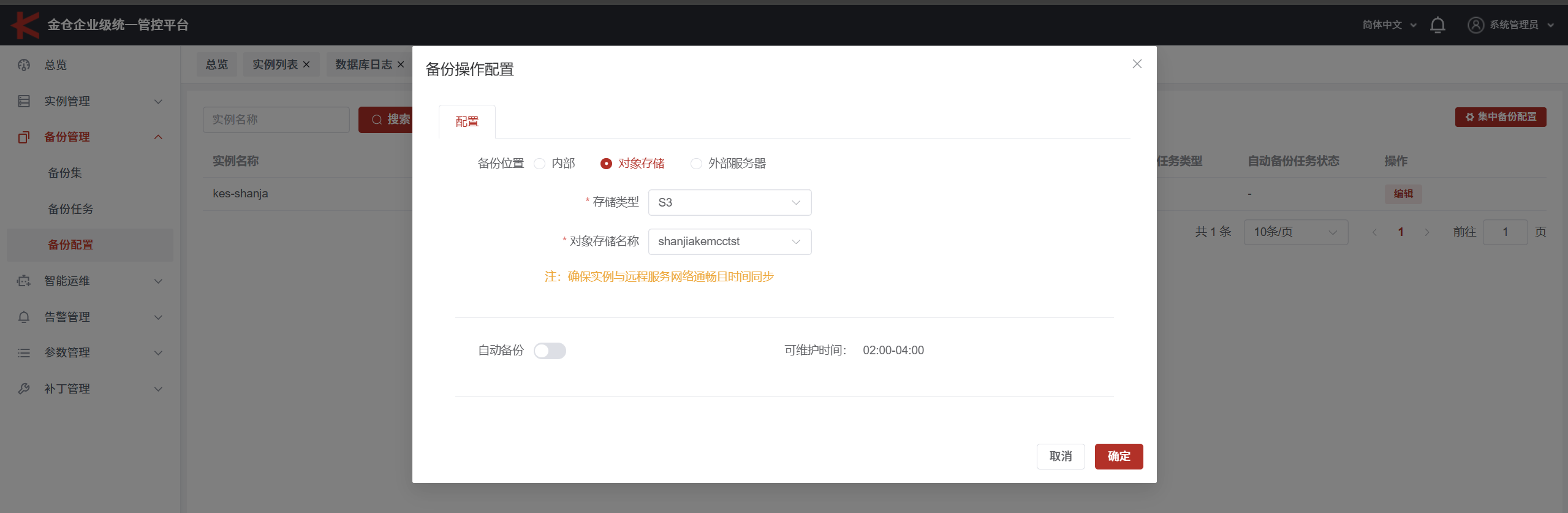 KEMCC不仅可以内部备份也可以进行外部备份,外部备份分为:外部服务器以及对象存储,本次就是使用对象存储进行备份目标端。