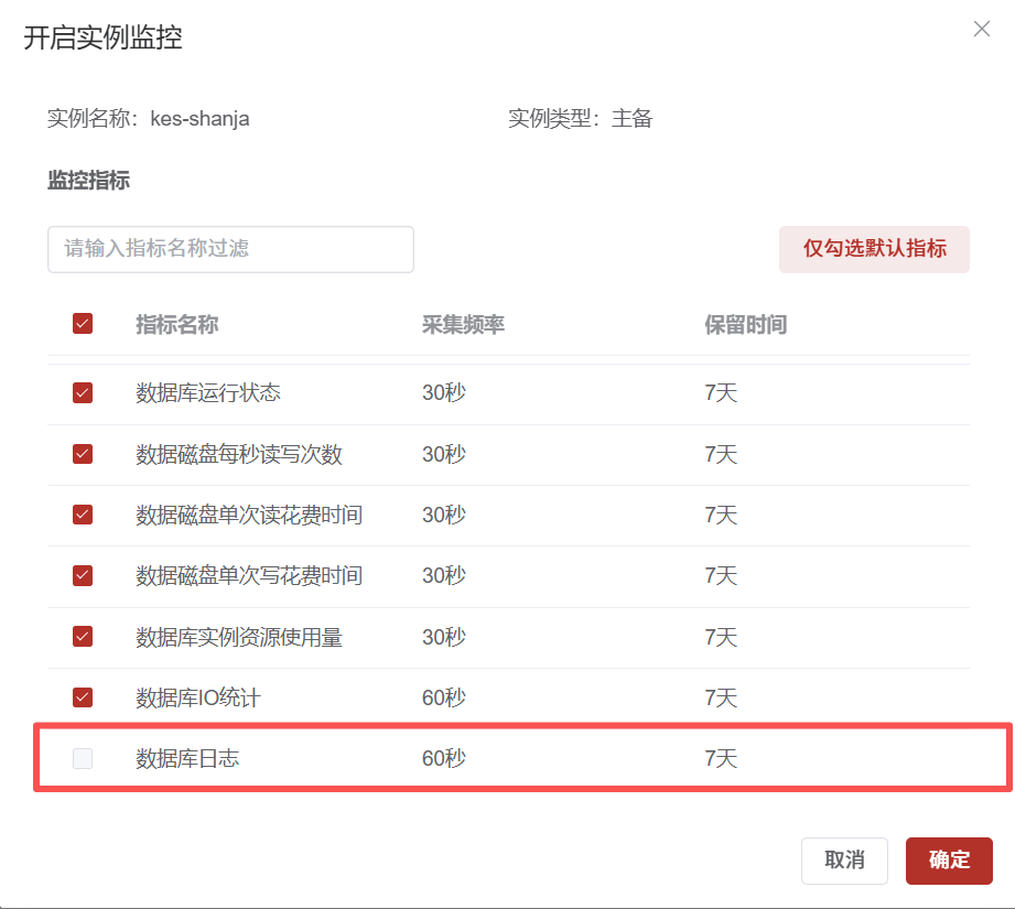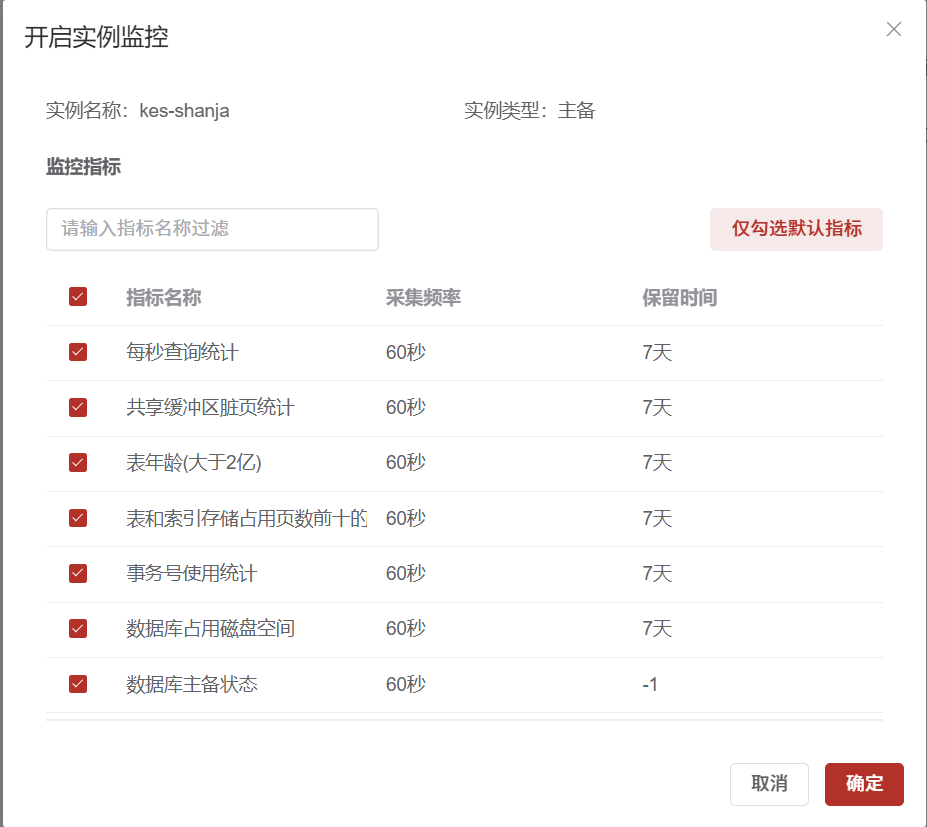 接下来我们进行开启实例监控配置,点击实例然后开启监控,即可进入配置界面