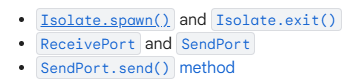 - 将工作Isolate的ReceivePort.sendPort的引用作为第一条消息传回给主Isolate。