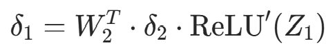 delta1 = np.dot(self.W2.T, delta2) * relu_derivative(Z1)