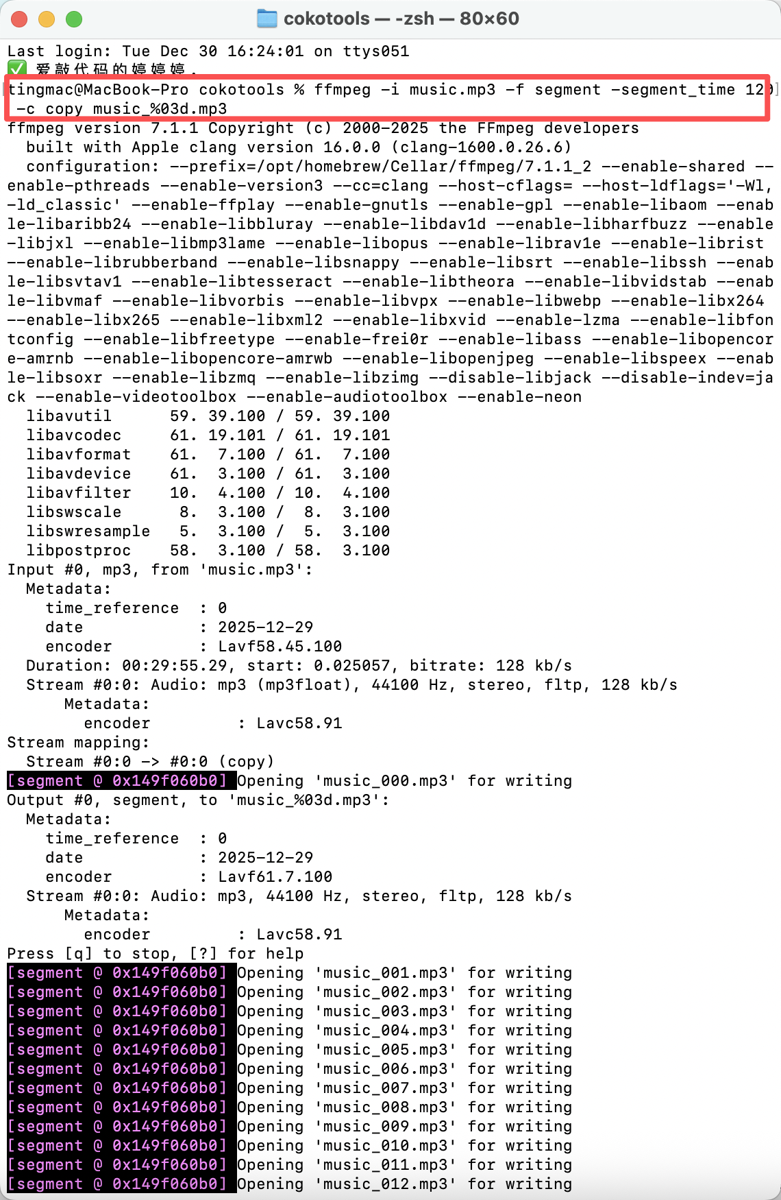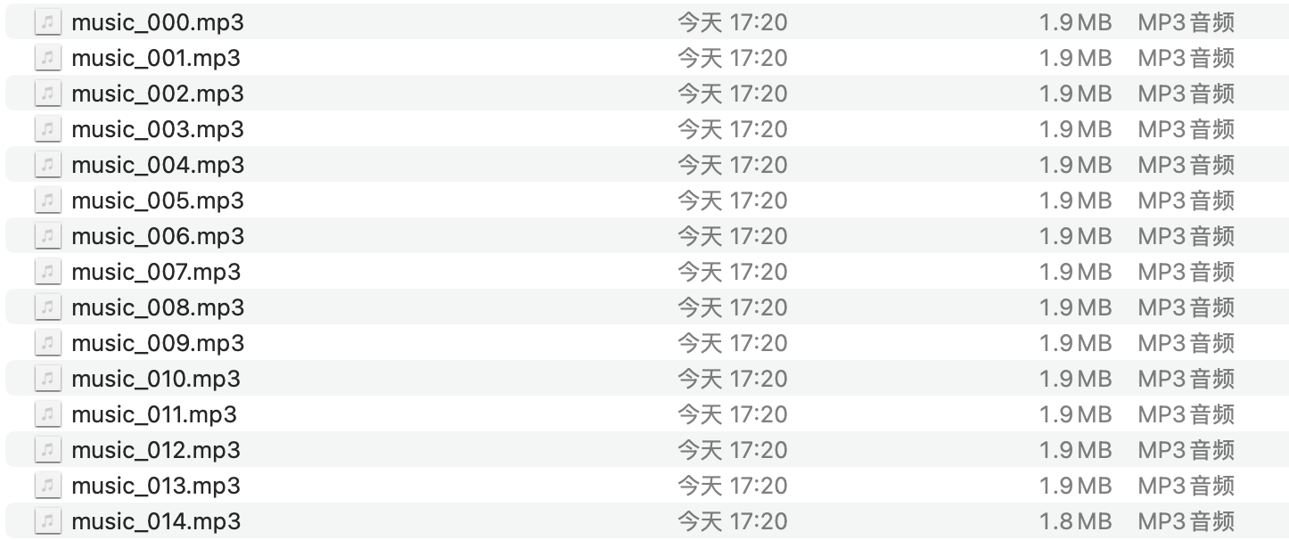 | music_%03d.mp3 | 输出文件名模板:%03d 会被替换为三位数字序号(001、002、003...),所以结果类似:music_001.mp3, music_002.mp3, music_003.mp3。 |