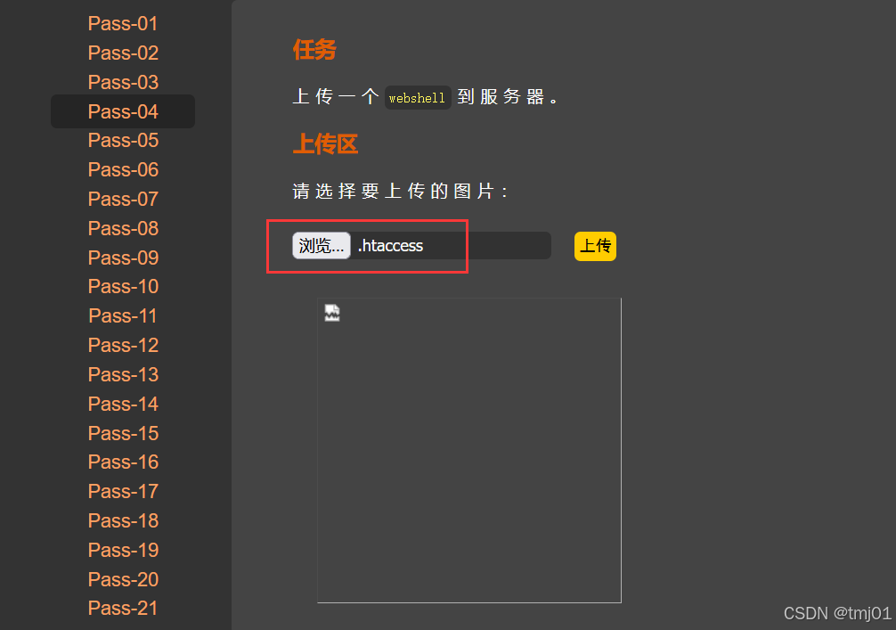 原理:黑名单过滤严格,但未禁 .htaccess,可通过它指定文件解析规则
