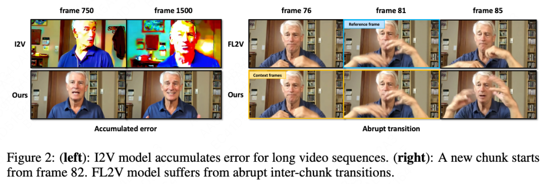 • I2V模型(图像转视频):长视频生成到后期,人物脸歪、背景变色(累积误差)