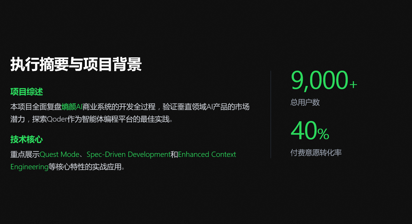 今天我想和大家分享的,不是什么高深的技术理论,而是一次真实、完整、从0到1的产品开发全过程。更重要的是,整个过程几乎完全由一个名为 Qoder的AI编程工具驱动完成。我会详细拆解我们是如何利用这个工具,在极短时间内构建出一个具备商业价值的AI应用,并重点介绍其中几个关键技巧和踩过的坑。