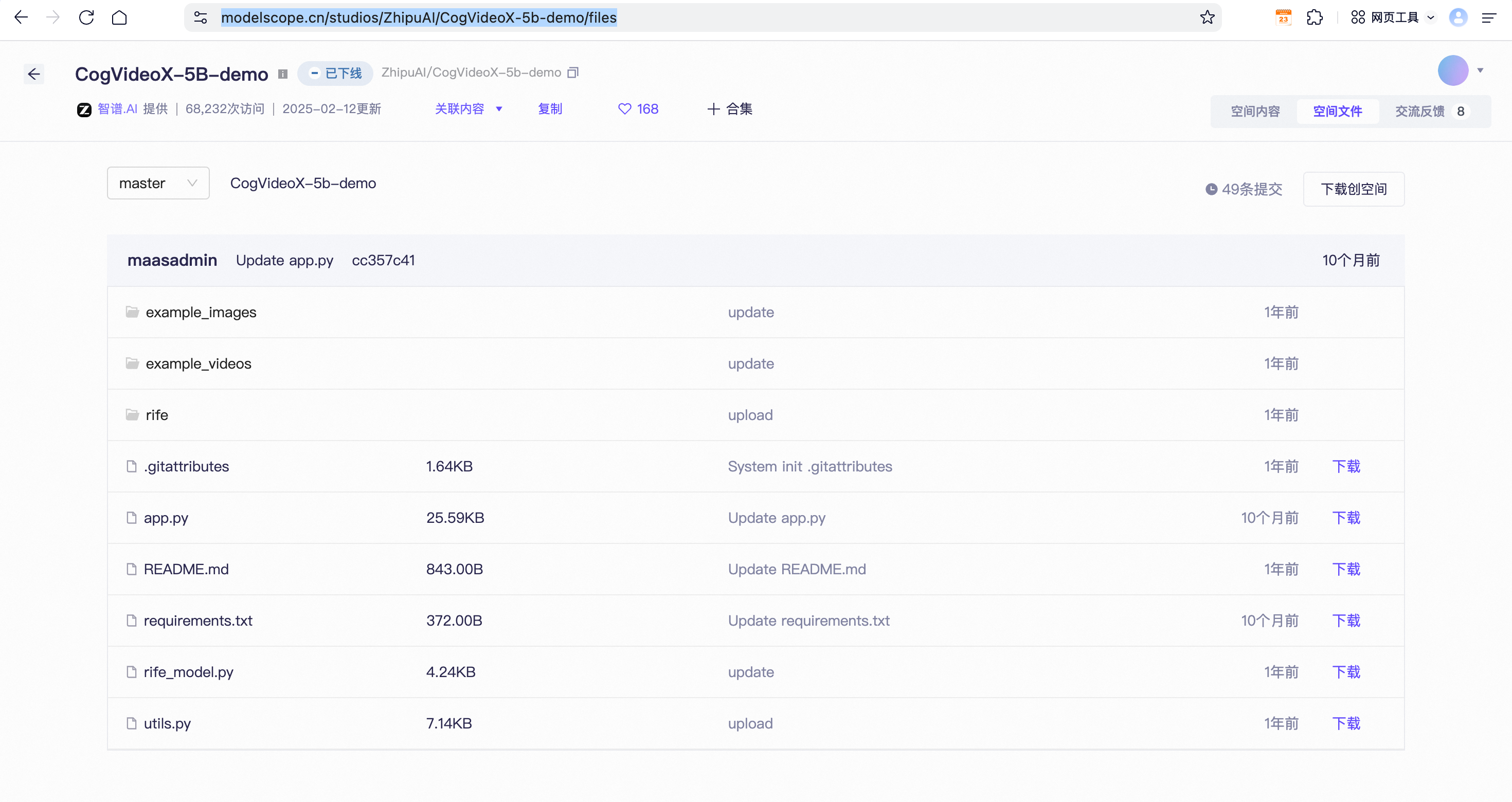 https://modelscope.cn/studios/ZhipuAI/CogVideoX-5b-demo/files