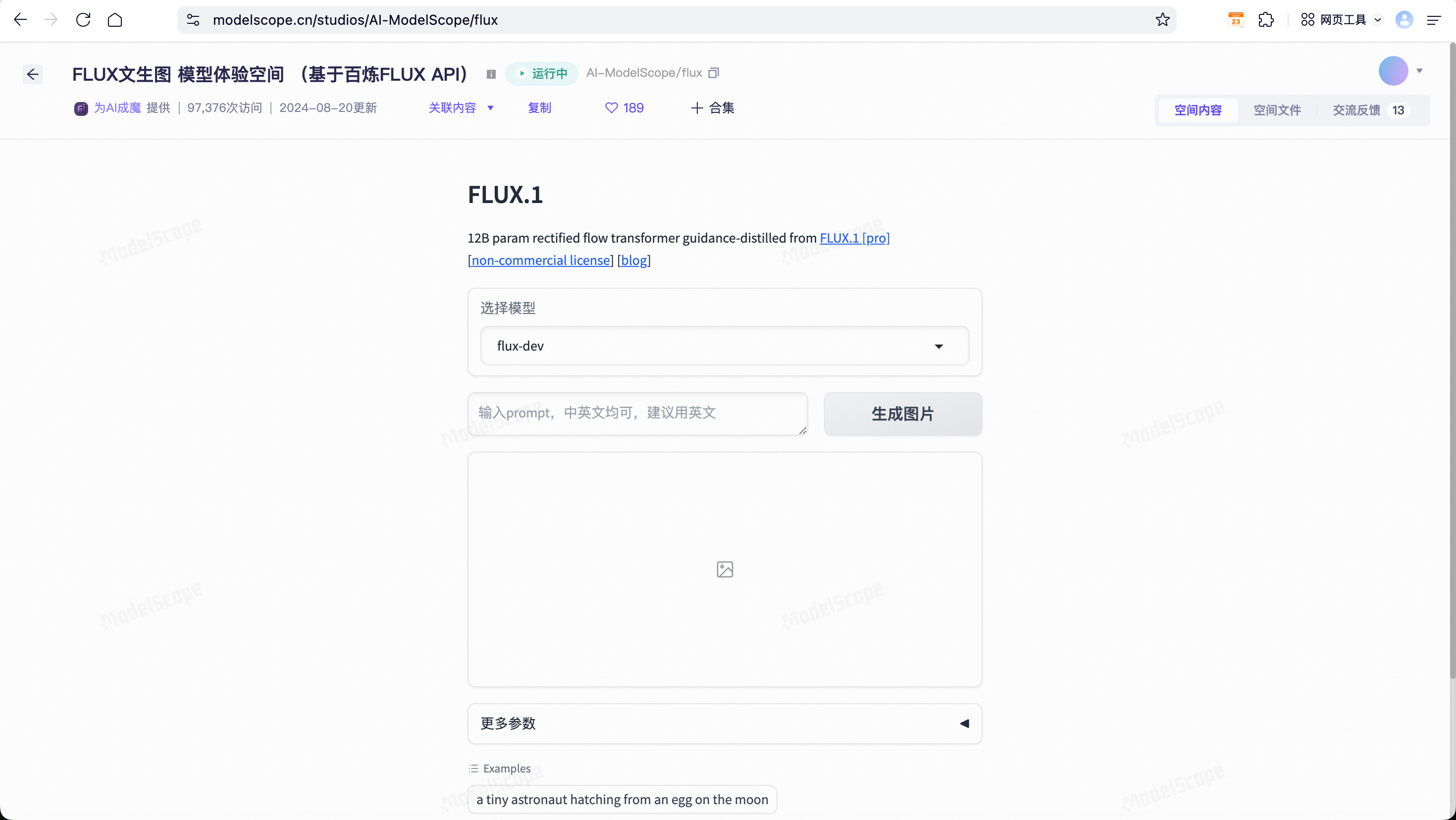 https://modelscope.cn/studios/AI-ModelScope/flux