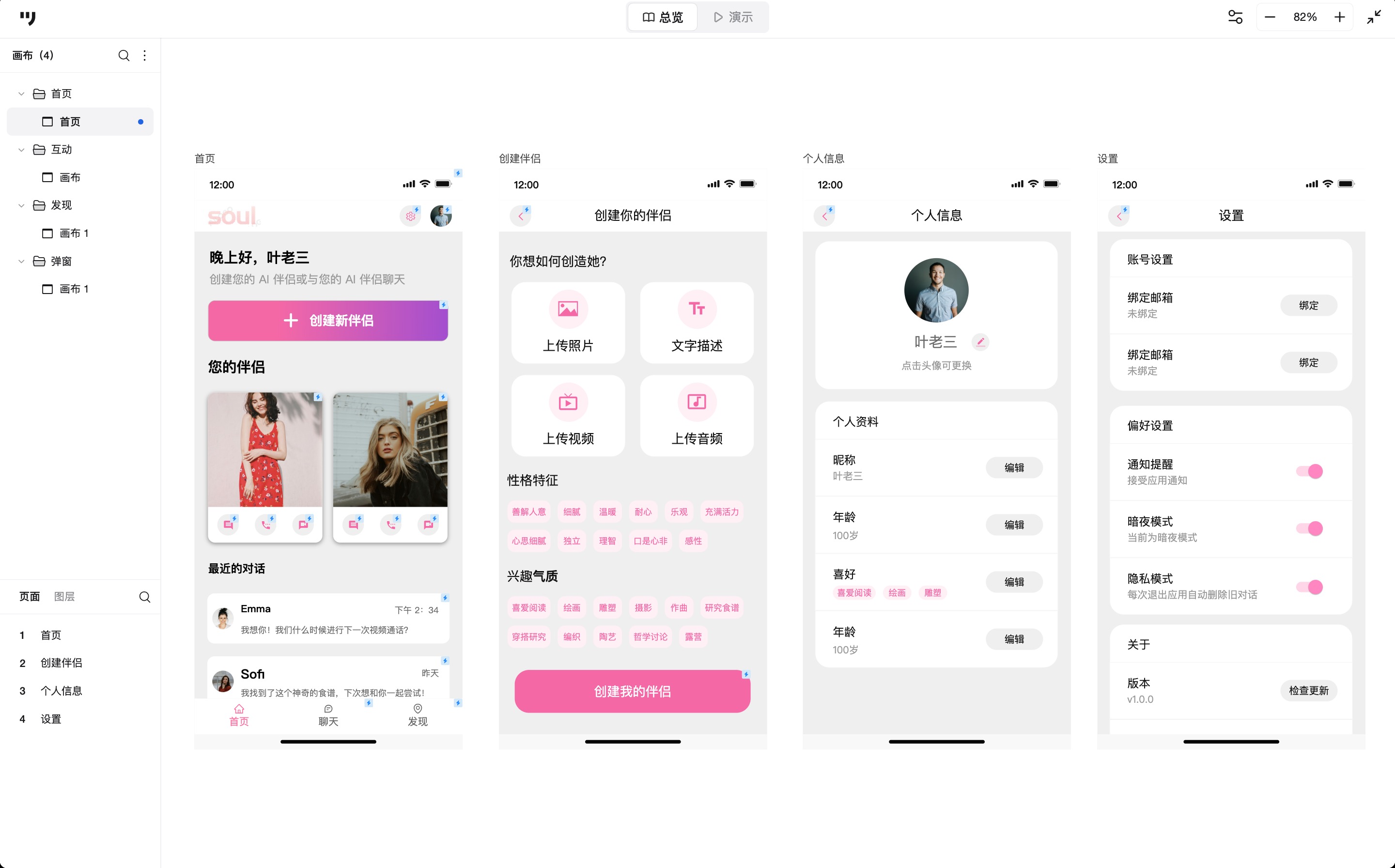 三、AI虚拟人物陪伴APP原型案例