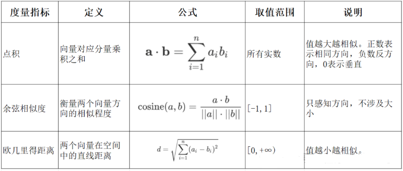 - **语义编码:**将文本、图像等转换为向量,保留上下文信息(如 BERT 的 CLS Token 或均值池化。相似度计算:通过余弦相似度、欧氏距离等度量向量关联性,支撑检索增强生成(RAG)、推荐系统等应用、