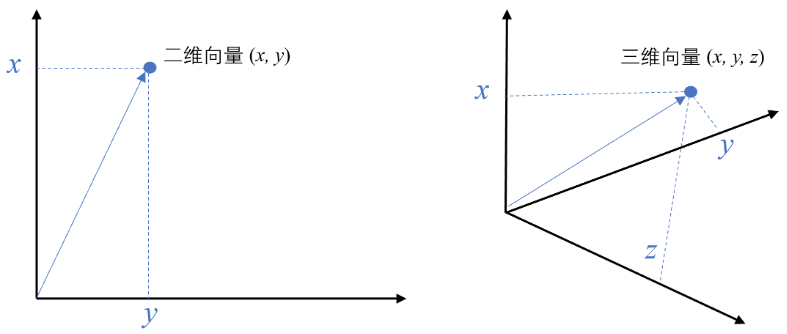 - 坐标表示:在二维平面中,一个向量可以用一对数字 (x, y) 来表示,比如 (3, 4)。这表示从原点 (0,0) 出发,指向点 (3,4) 的箭头。在三维空间,就是 (x, y, z)