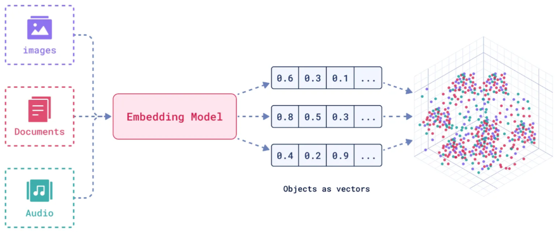 - 例子: "猫"和"狗"都是宠物,它们的向量距离会很近;而"猫"和"电脑"的向量距离会很远。