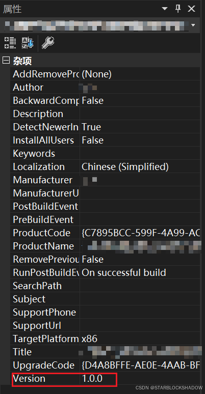 若程序更改想要直接覆盖升级,则需要修改 Setup 项目属性,将 Version 改为大于原版本号,修改后系统会自动提示是否修改 ProductCode,此时点"是",此时生成的安装包运行则不会再提醒了。