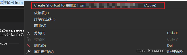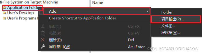 在 Application Folder 文件夹中选中"主输出",并右键选择Create Shirtcut to 主输出 from ...生成快捷方式: