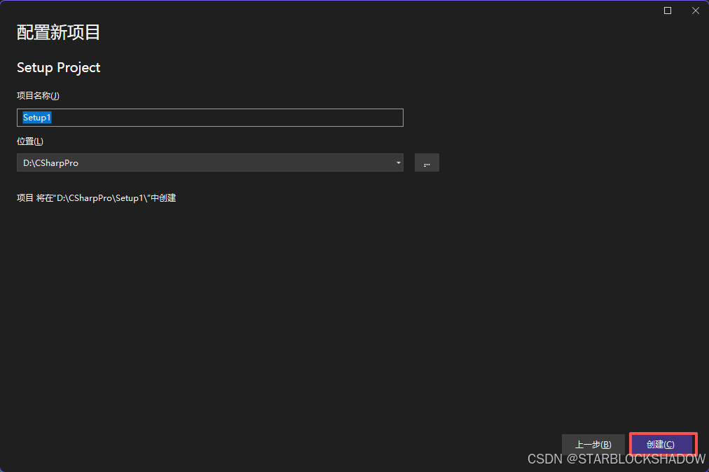 配置项目名称后,点击"创建"按钮创建Setup项目: