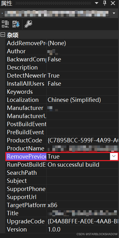 同时,需要设置Setup项目的RemovePreviousVersion属性为True。