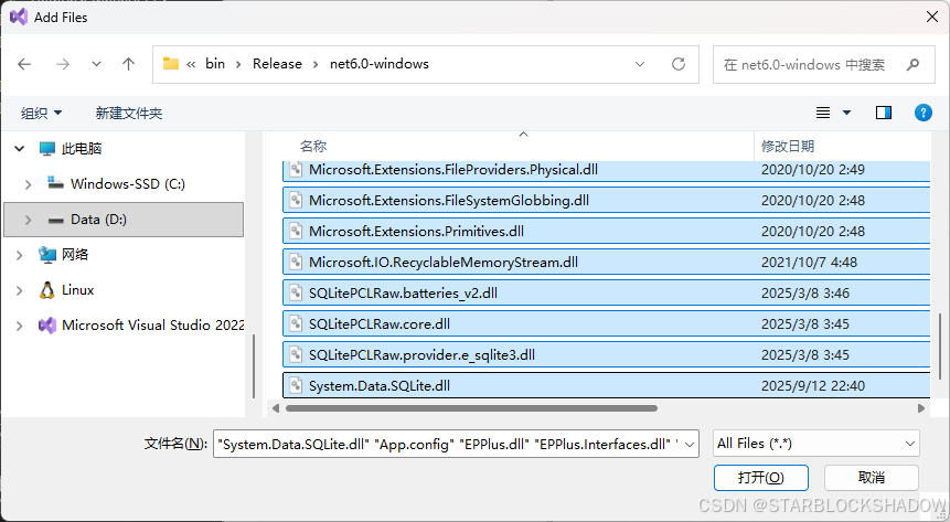 进入项目的bin文件夹,选择Release,全选所有的文件,并点击打开: