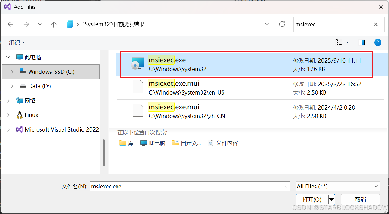 在 Application Folder 文件夹右键中添加 C:\Windows\System32\msiexec.exe文件: