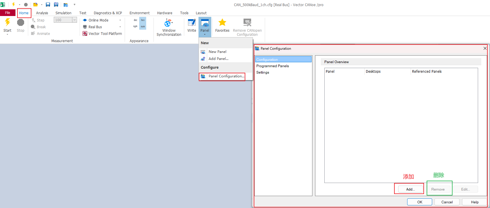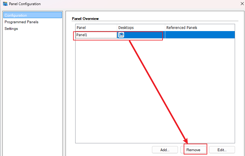 - 例如删除下图中的面板 Panel1,先打开 Panel Configuration: