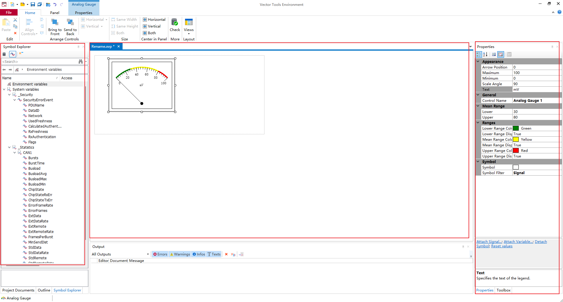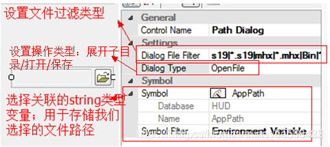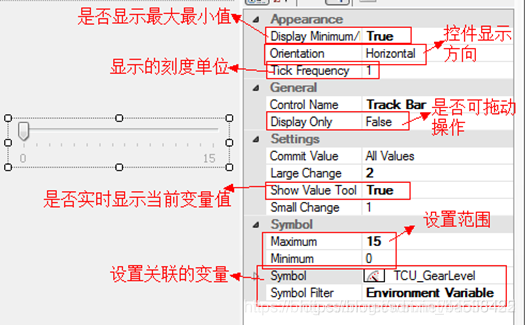- 一般情况下,参数 Symbol Filter 用于选择该控件关联的数据类型,如信号、环境变量、系统变量等。然后,再在参数 Symbol 中选择具体的信号或变量进行关联。这样,就将控件的状态与 CANoe 联系起来了,当我们对控件进行操作时,会间接改变其关联的变量或信号值,可继续通过 CAPL 编程获取该变量的值进行下一步动作。