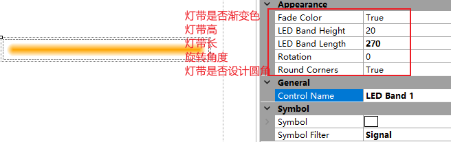 - LED Band 是一种指示类控件,通过多个 LED 灯珠的亮灭组合以条形图的形式直观地展示关联信号或变量的数值范围或百分比进度。