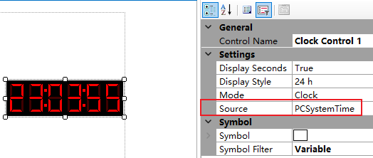 - 用于时间显示,可以指示工程的运行时间(需要在 CAPL 中编程实现,在参数 Source 处选择 CAPL),或对当前实际时间进行显示(在参数 Source 处选择 PCSystem Time),主要设置的参数为时间的输入源。
