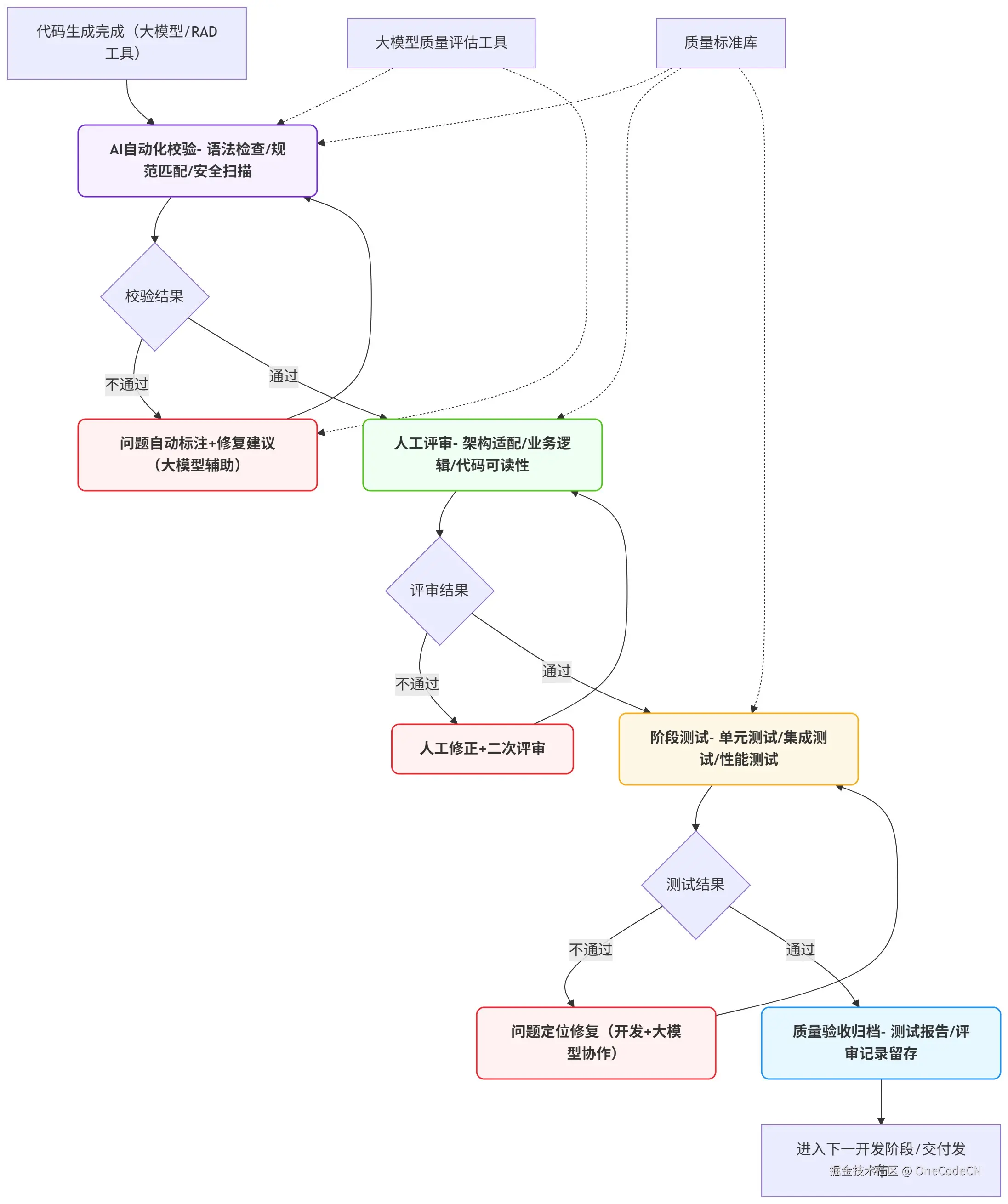 - 代码评审:所有代码必须经过至少1次同行评审,特别是大模型生成的代码