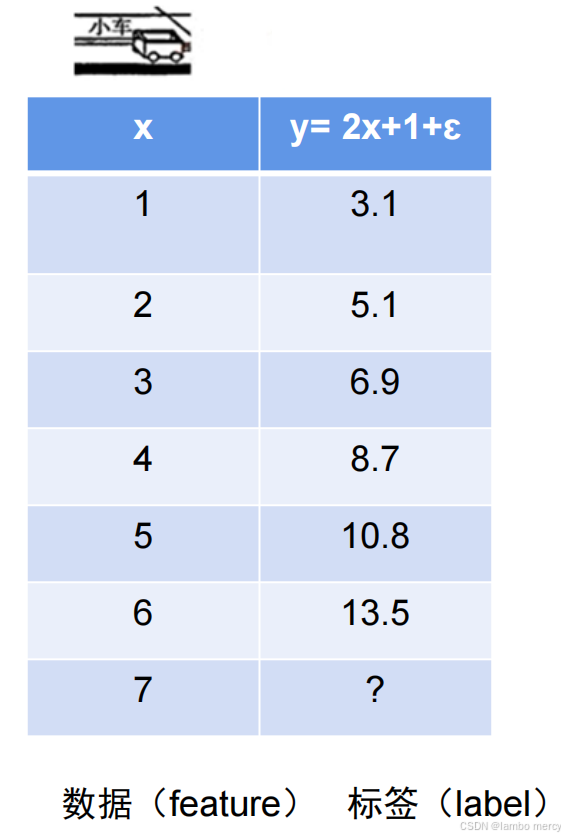 这是一辆小车,x表示时间,y表示当前速度,我们只有多组的(x,y)值,如何推断出y和x之间的函数关系?