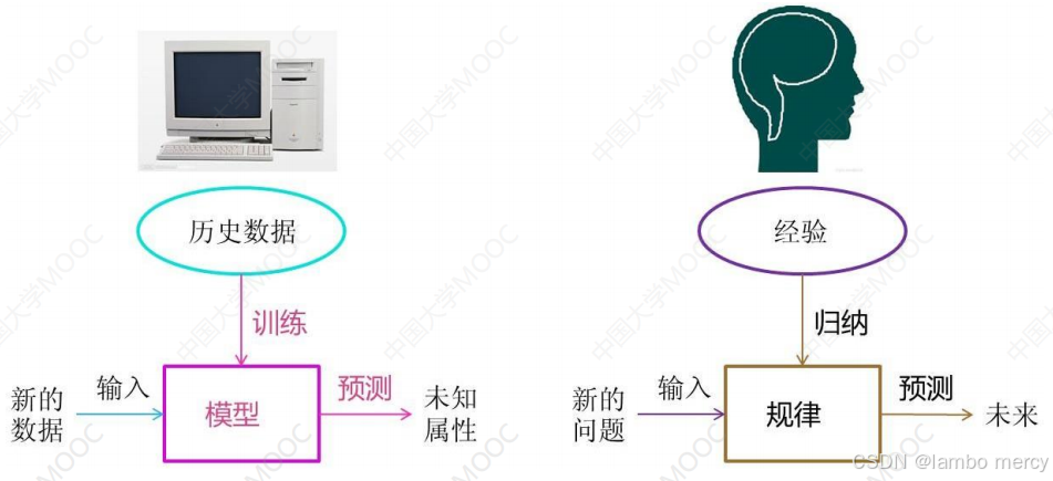 - 机器学习:计算机利用已有的数据,得出了某种模型,并利用此模型预测未来的一种方法。