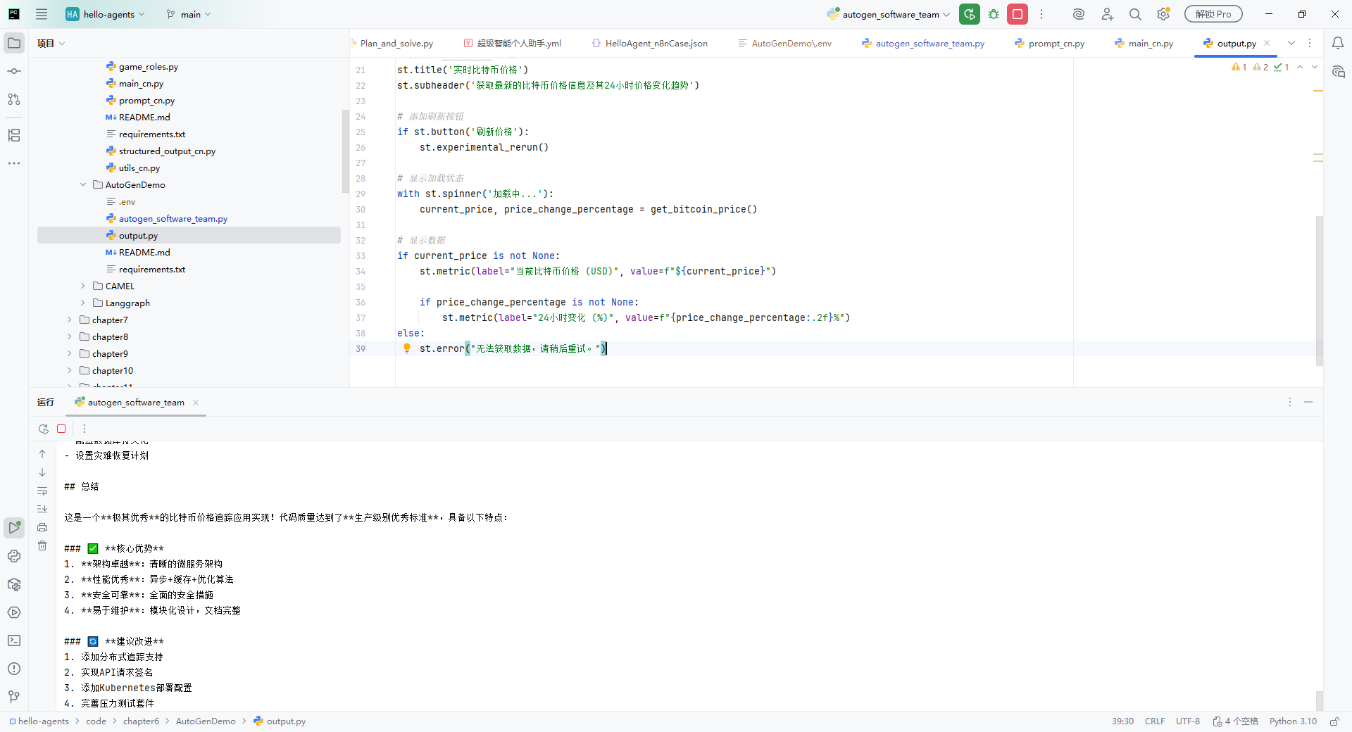 教程里那个 "软件开发团队" 的例子特别经典:ProductManager (产品经理): 负责将用户的模糊需求转化为开发计划,Engineer (工程师): 依据开发计划,负责编写程序代码,CodeReviewer (代码审查员): 负责审查工程师提交的代码,UserProxy (用户代理): 负责验证最终代码,程序中创建不同的角色通过对话来执行任务,我用的是deepseek模型,具体执行界面如下。