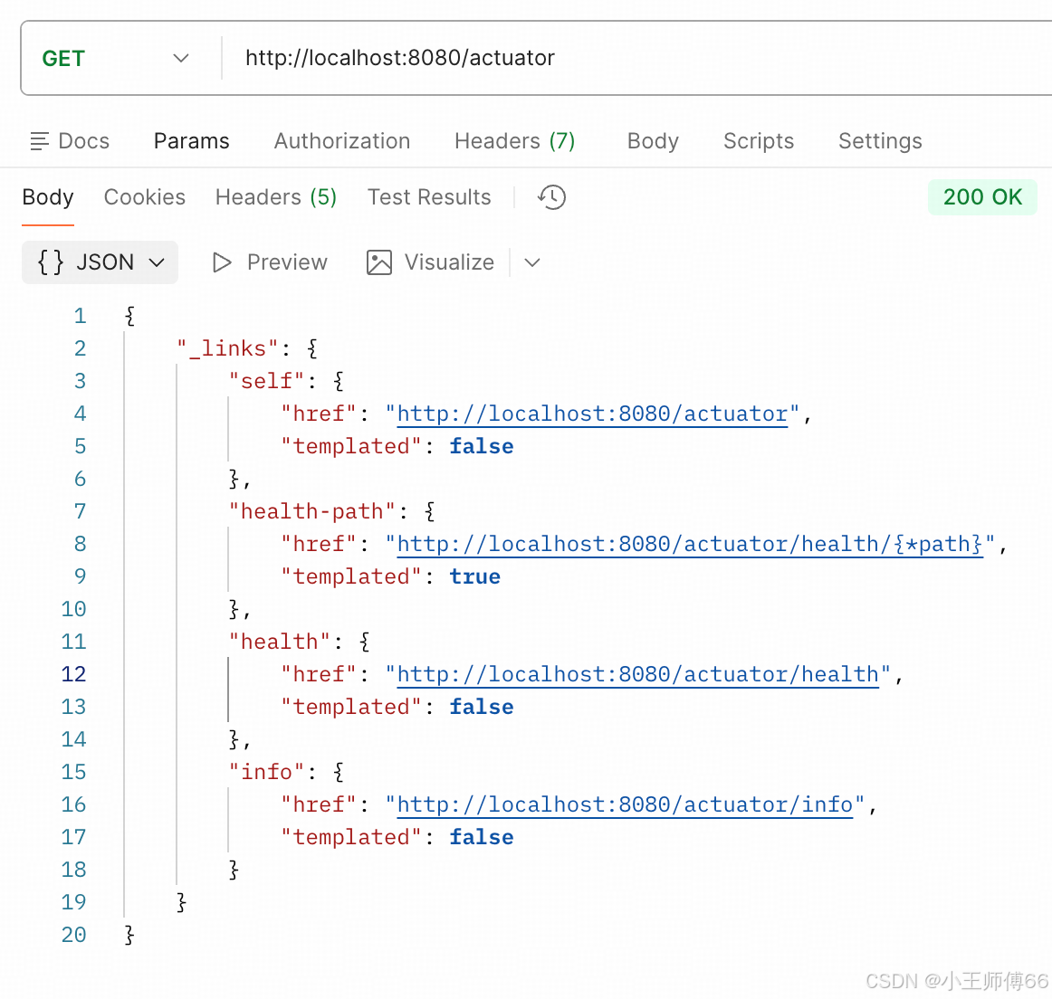 1、查看所有暴露的端点:http://localhost:8080/actuator