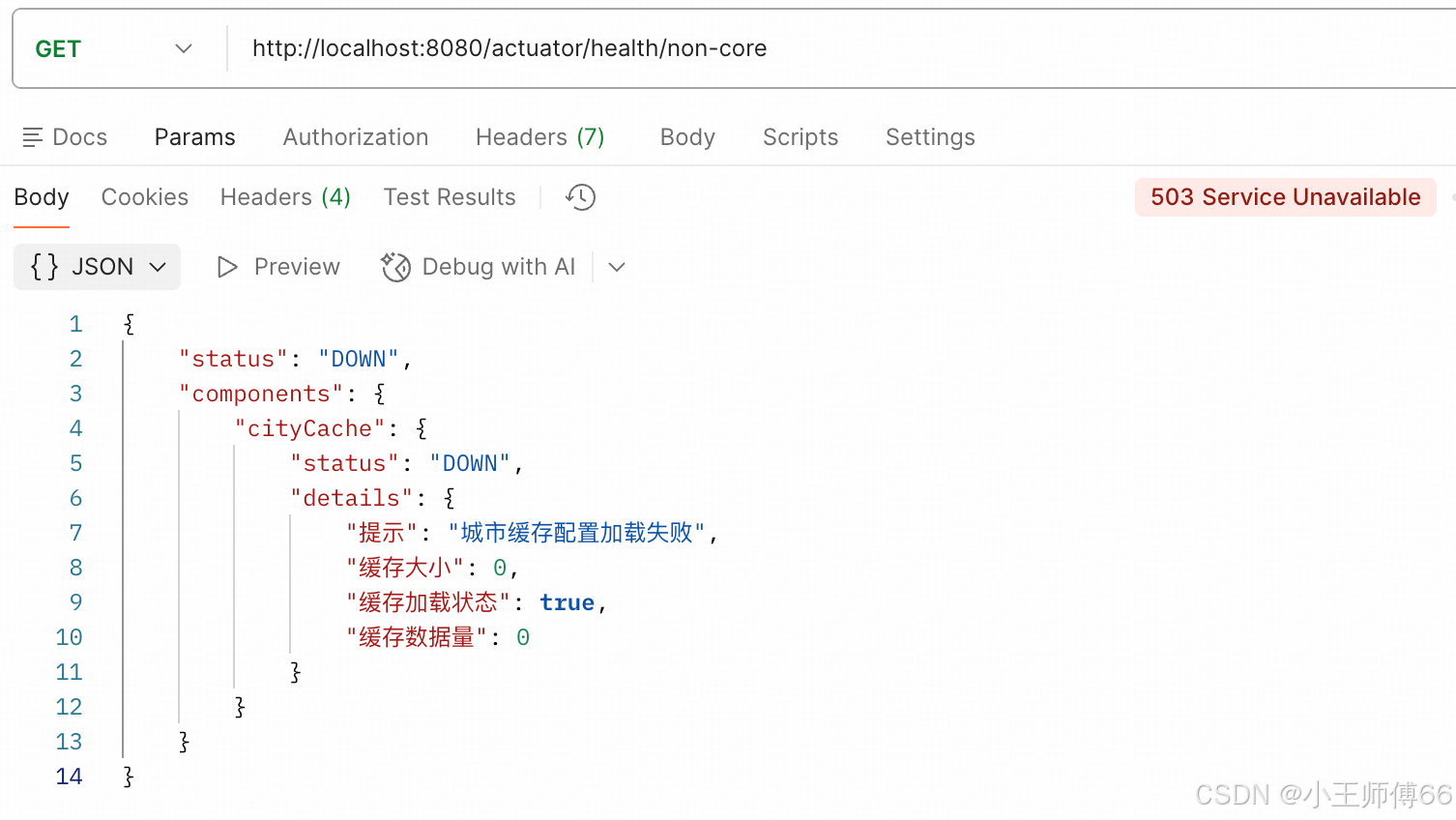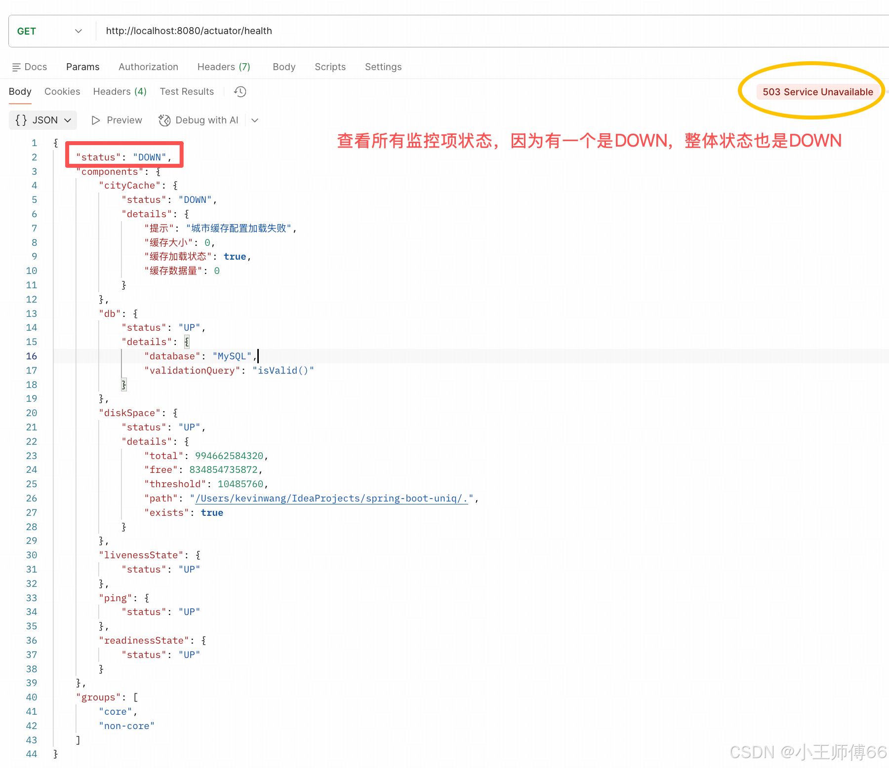 再看看非核心组的状态:http://localhost:8080/actuator/health/non-core