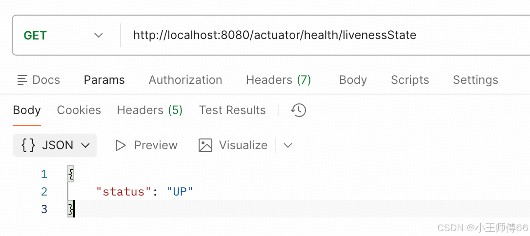 liveness访问路径:http://localhost:8080/actuator/health/livenessState