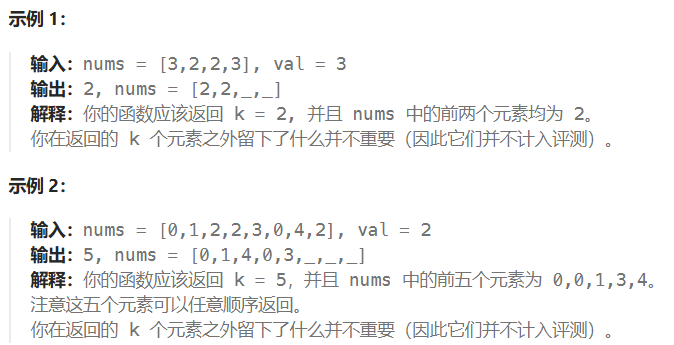 nums数组,使nums的前k个元素包含不等于val的元素。nums的其余元素和nums的大小并不重要。- 返回