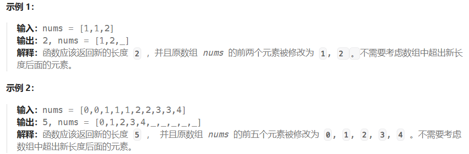 数组具有" 非严格递增排列 "的性质,如果原地删除重复元素且"相对顺序保持一致",则数组会出现" 严格递增 "的特点