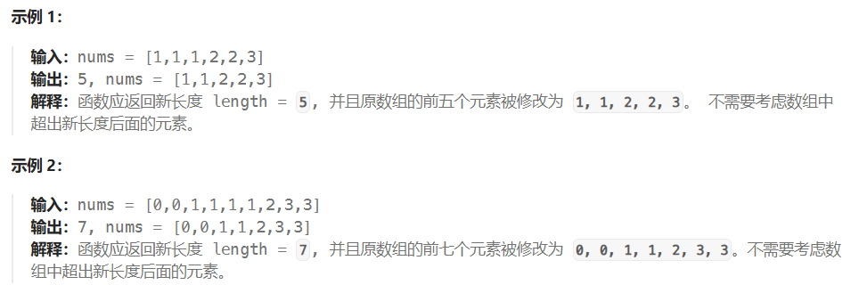 nums,请你原地 删除重复出现的元素,使得出现次数超过两次的元素只出现两次 ,返回删除后数组的新长度。不要使用额外的数组空间,你必须在原地修改输入数组并在使用 O(1) 额外空间的条件下完成。