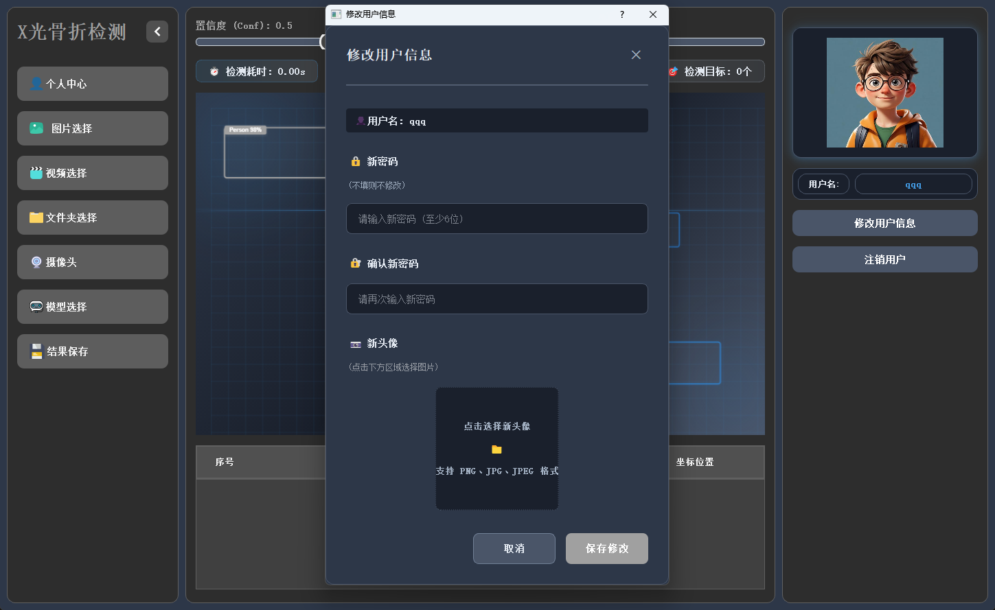 用户可在此模块中修改密码或更换头像,个人信息支持随时更新与保存。