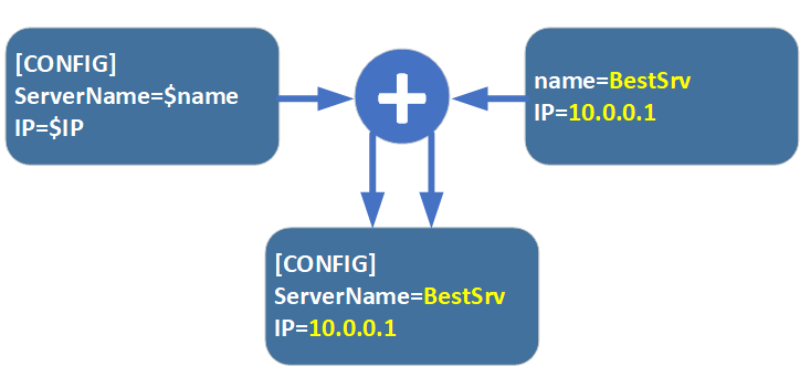 `cat` template.txt | `sed` `"s/\$IP/$IP/"` |