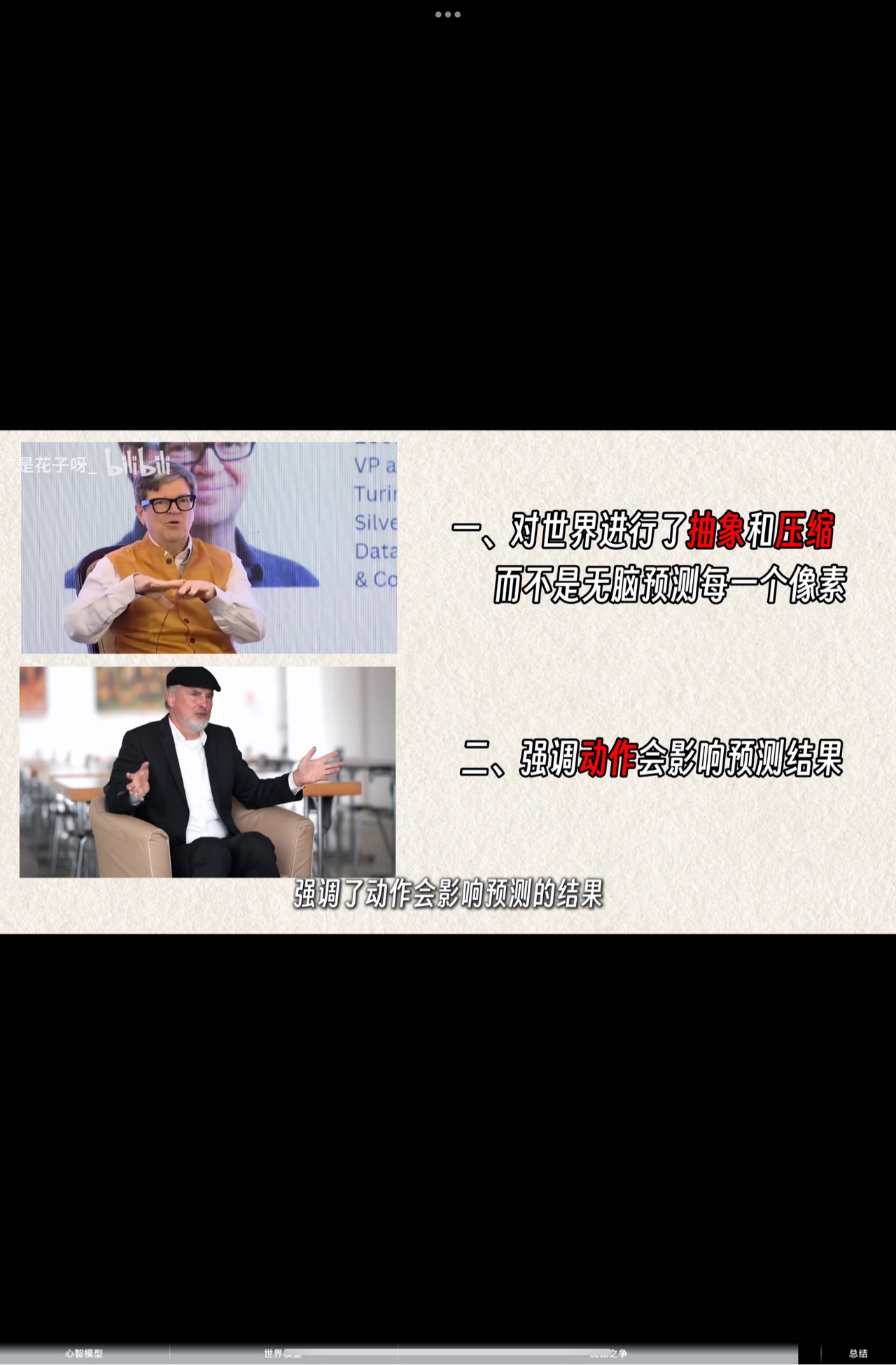 * 世界模型具备"反事实推理"能力。比如:"如果我刚才没点那个按钮,现在会怎样?"它能在脑海里进行无数次"沙盘推演",而不需要真的去试错。
