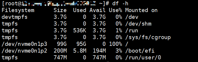 dh -f # 查看磁盘空间