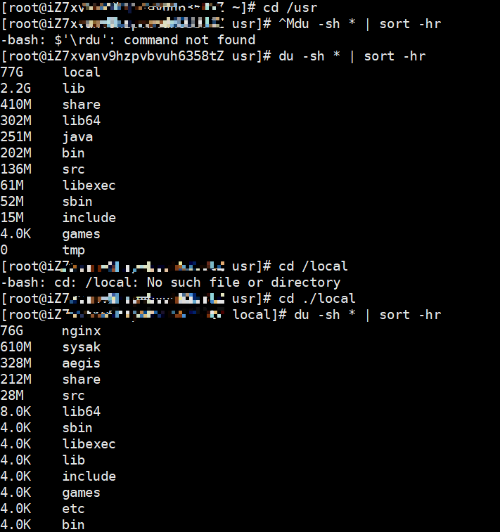 du -sh /* | sort -hr # 查看目录下哪个文件夹占用最多
