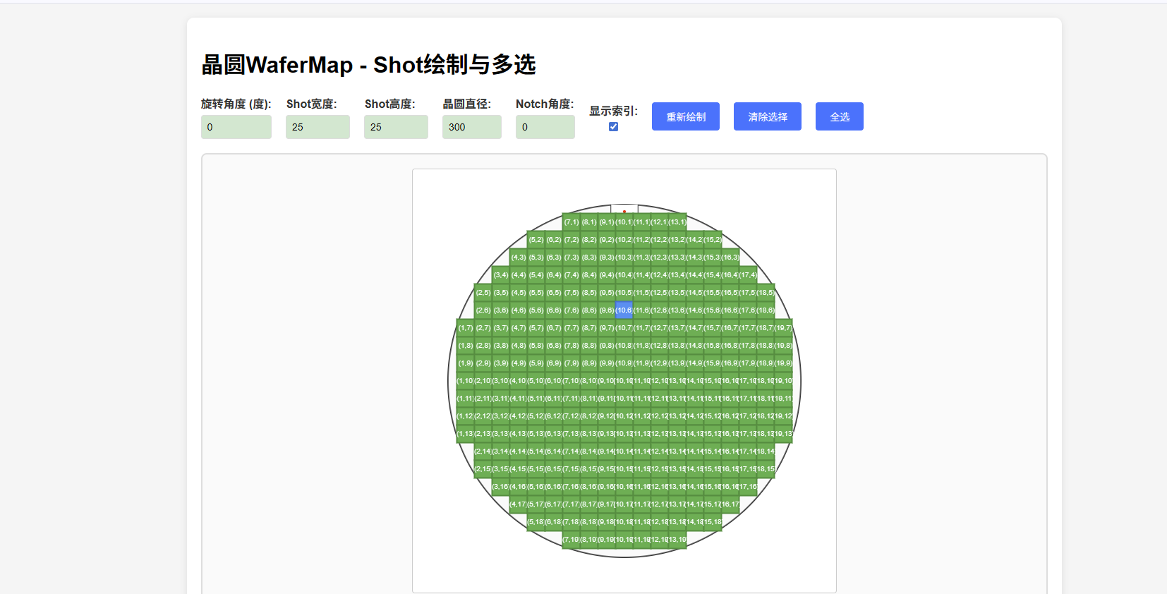 <h1>晶圆WaferMap - Shot绘制与多选</h1>
