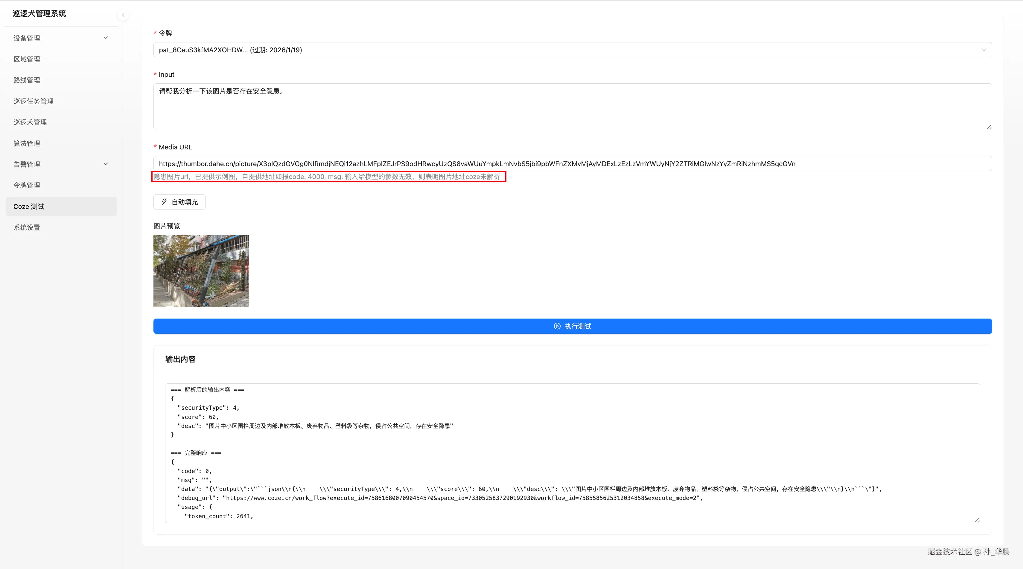系统提供了专门的Coze测试页面,方便开发者测试和调试AI分析功能。在Coze测试页面中,可以:
