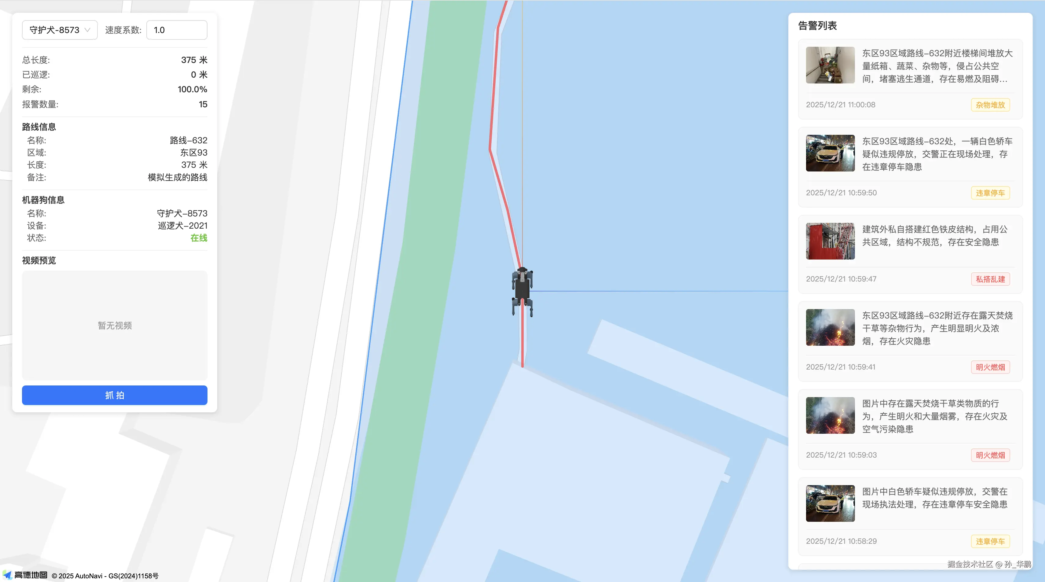 - 实时告警:巡逻过程中的实时检测和告警推送