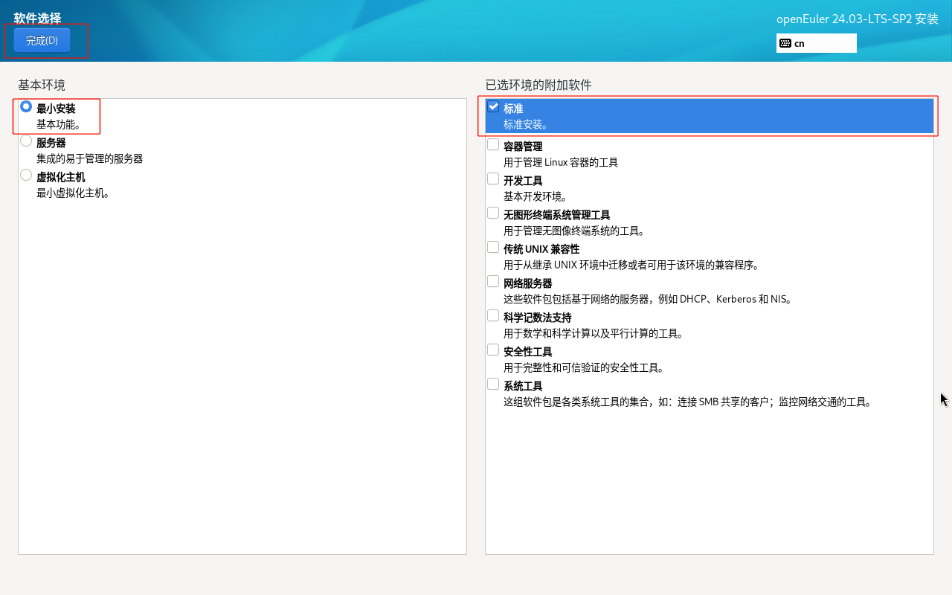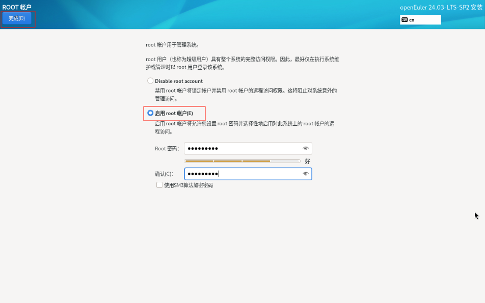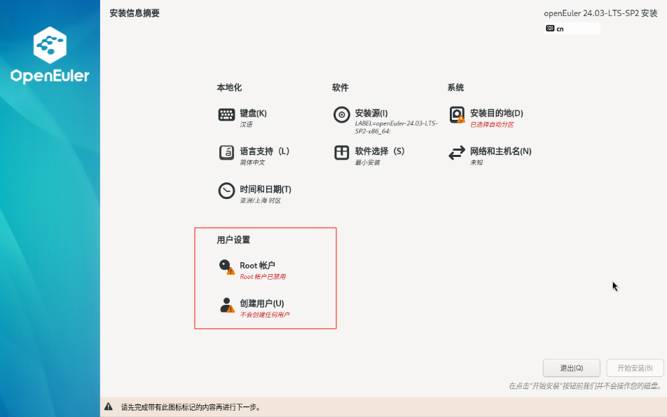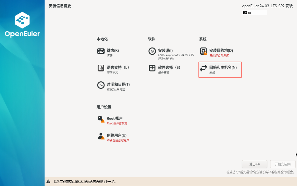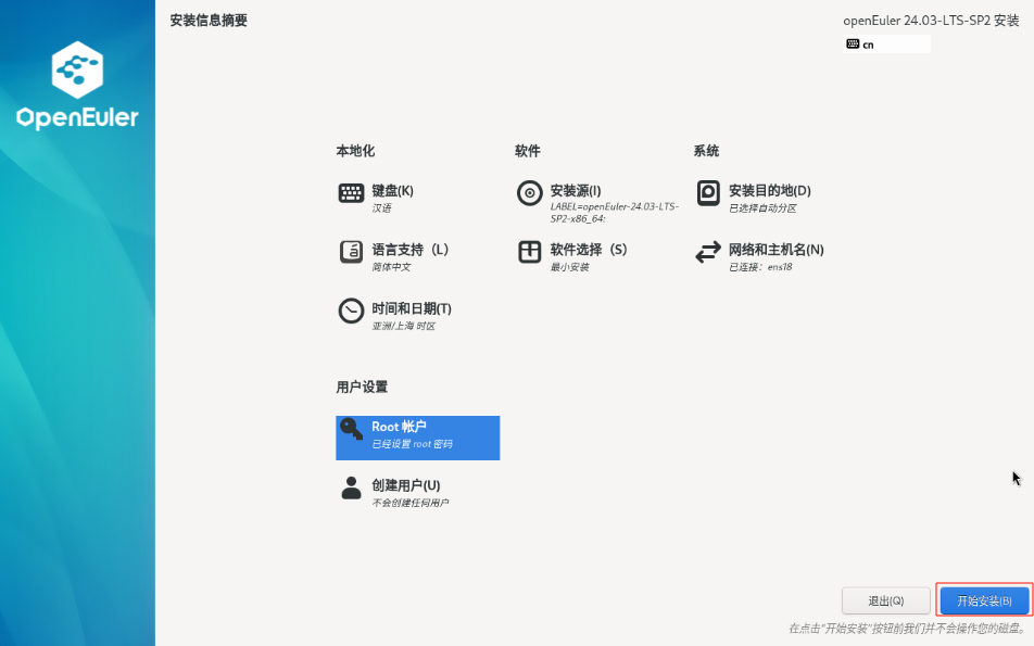 - Install openEuler 24.03-LTS-SP2:图形化安装