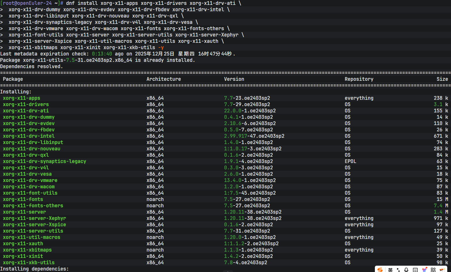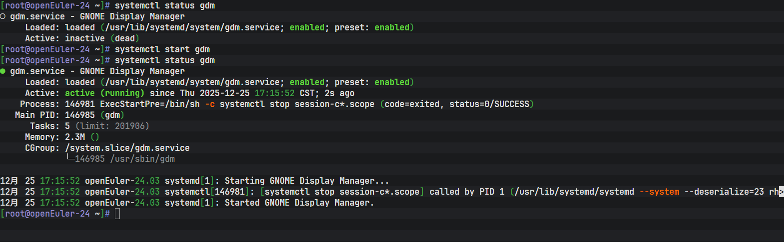 openEuler默认使用命令行登录,我们需要启用图形登录界面: