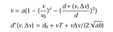 两种常用的控制速度和决定何时换道的模型是 建模汽车纵向动态特性的智能驾驶员模型(Intelli gentDrivingModel,IDM)和基于换道最小化刹车 次数MOBIL决定何时换道的模型