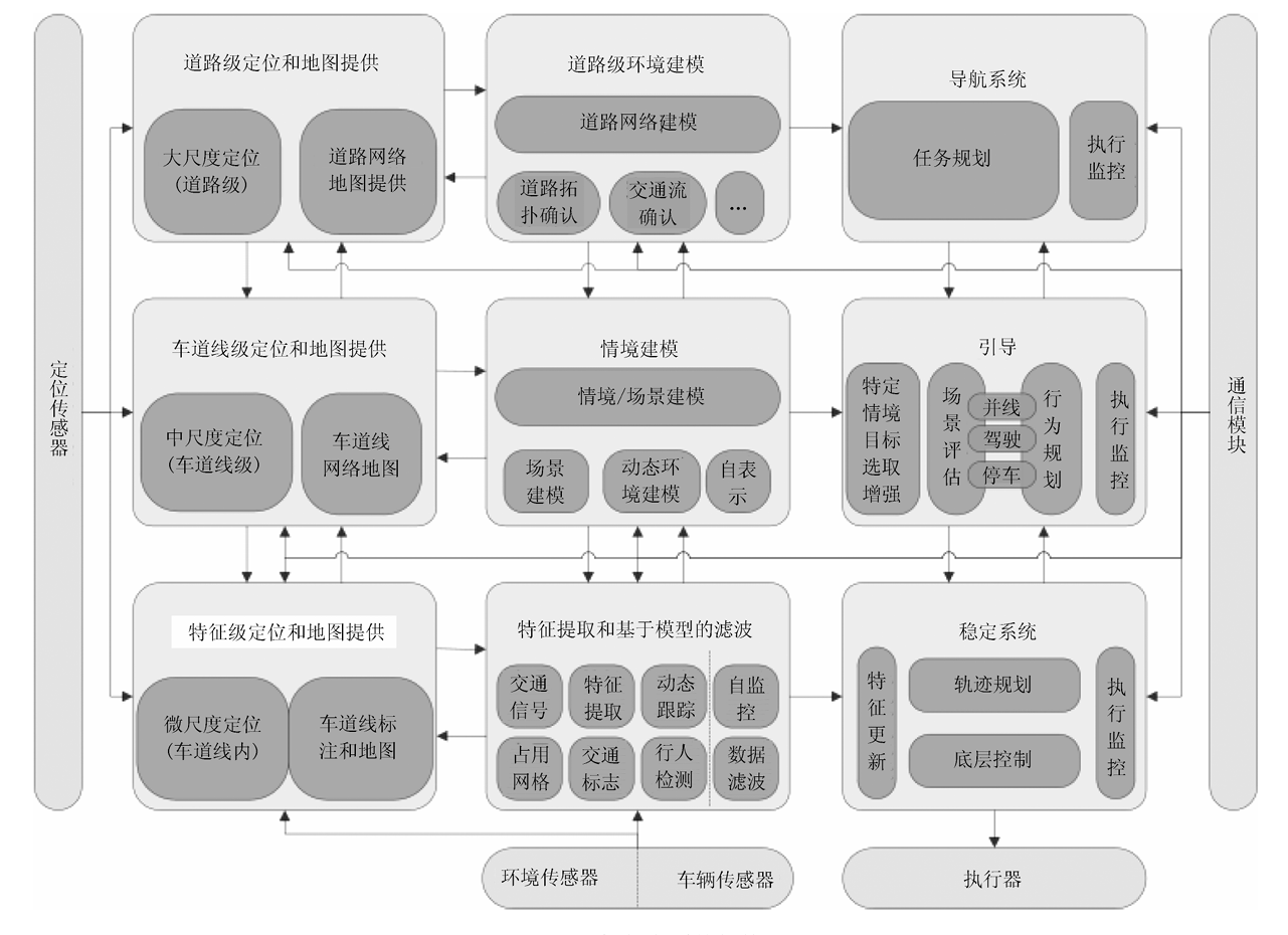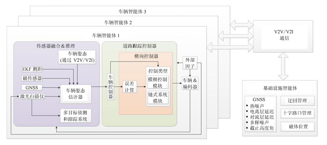 当前的智能车研究主要集中于单车系统在感知、规划和决策等模块的研究,车辆各自执行自己的 检测、避障、识别标志等任务,每台车采集到的数据 相互之间也是不共享的,这就要求单车本身各功能 模块非常可靠.而智能网联汽车的诞生将极大提高 单车效率.智能网联汽车是指搭载先进的车载传感 器、控制器、执行器等装置,并融合现代通信与网络 技术,实现人--车--路--云端等信息交换、共享,具备 复杂环境感知、智能决策、协同控制等功能的新一 代汽车,典型架构如图所示.